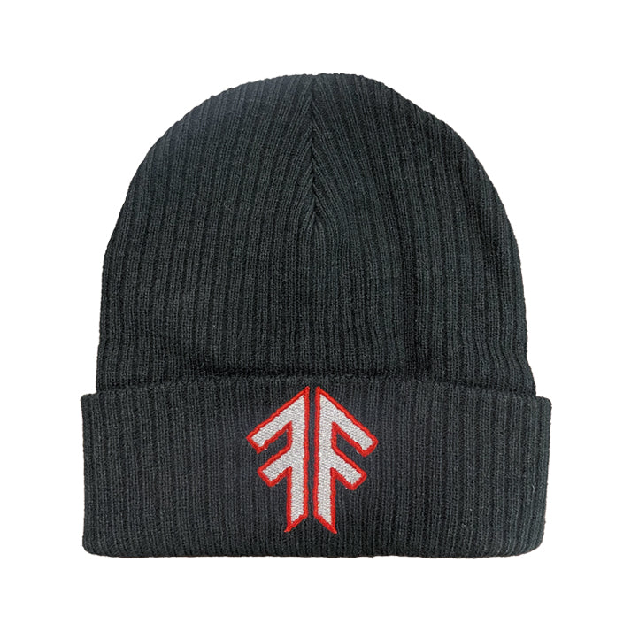 Beanie hat featuring Amon Amarth Runic Logo embroidered on the front and back.