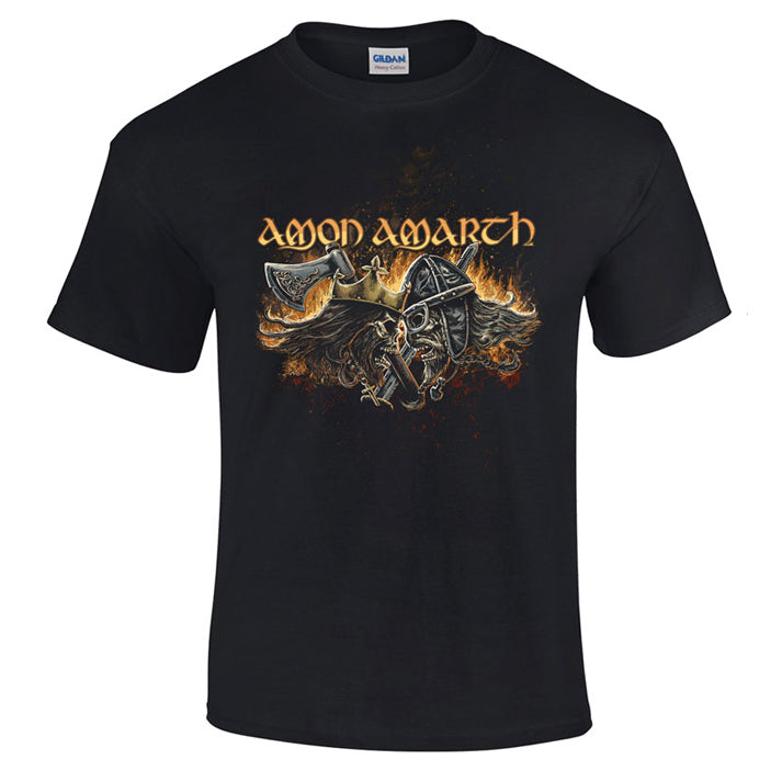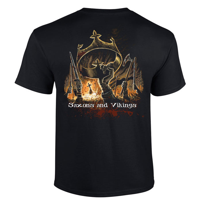 Unisex T-shirt in black featuring Amon Amarth "Saxons & Vikings" artwork printed on the front and back.