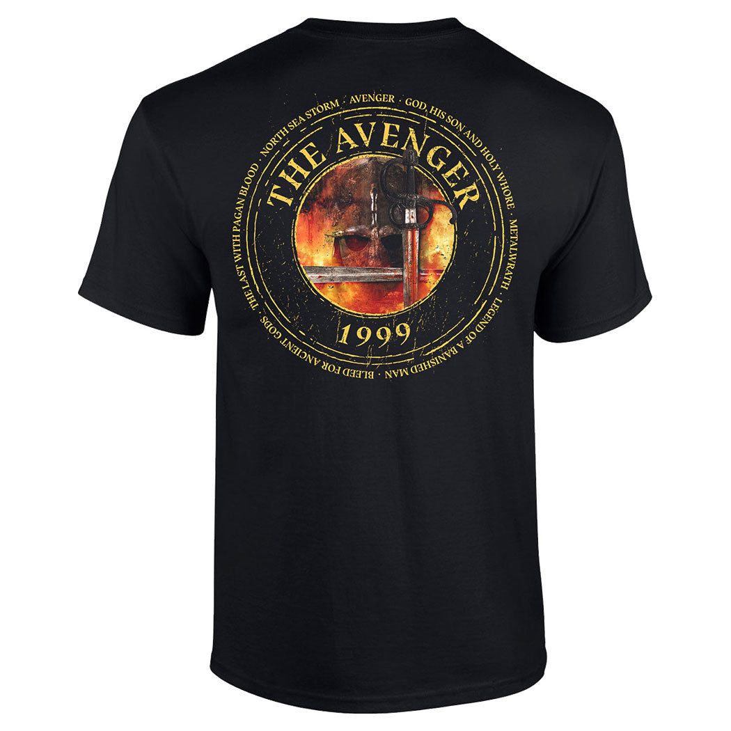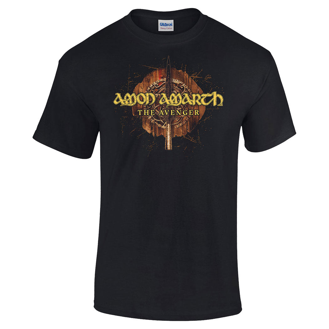 Unisex T-Shirt in black featuring Amon Amarth "The Avenger" artwork printed on the front and back.