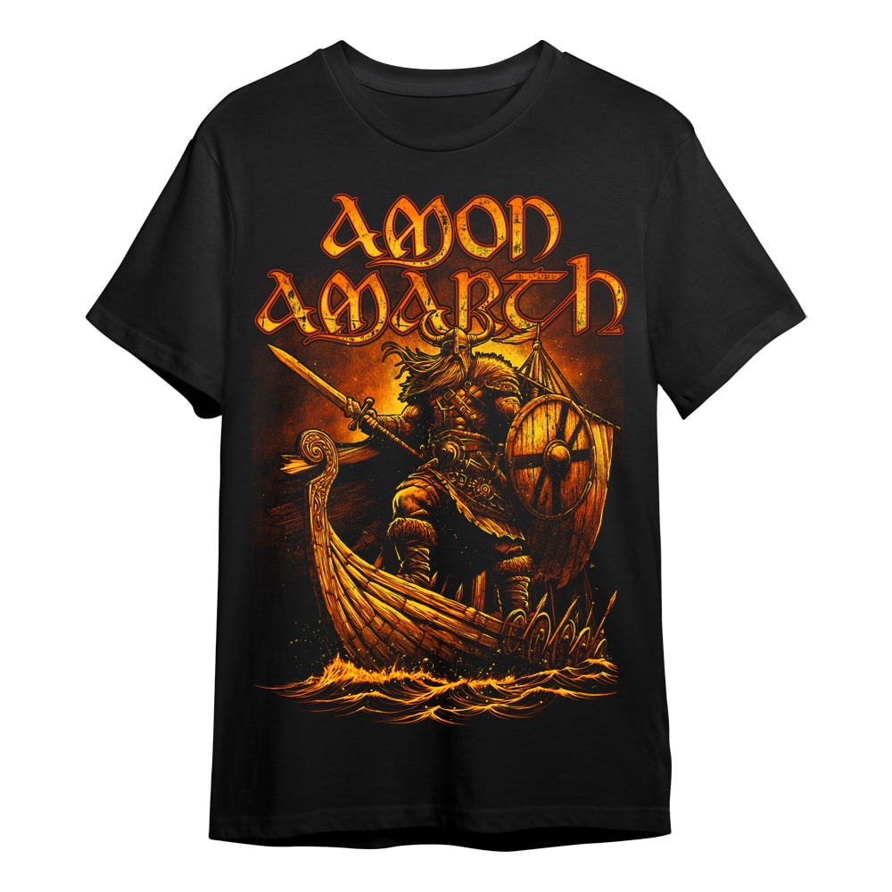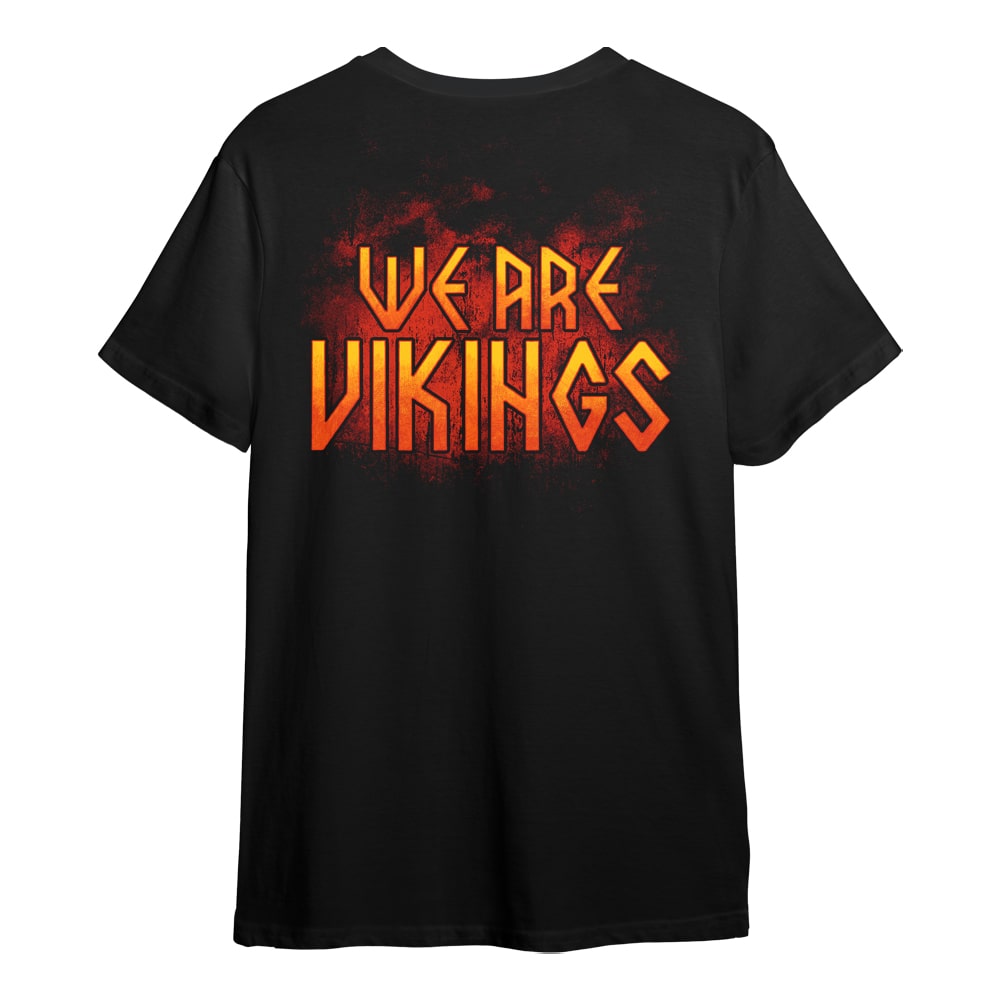 Unisex T-shirt in black featuring Amon Amarth "We Are Vikings" artwork printed on the front and back.