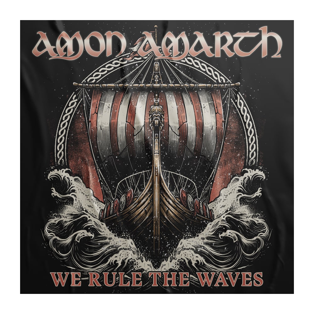 Textile Flag featuring Amon Amarth "We Rule The Waves" artwork printed on the front.